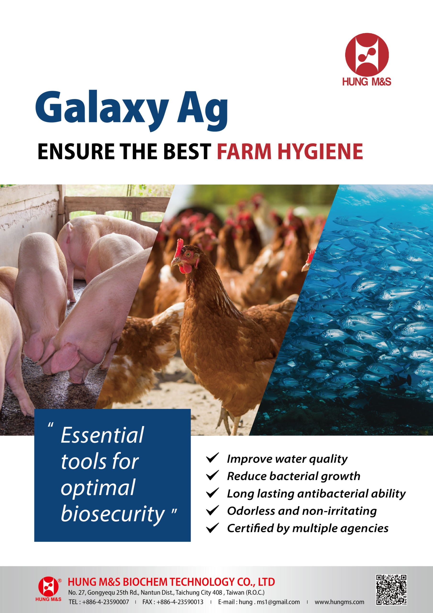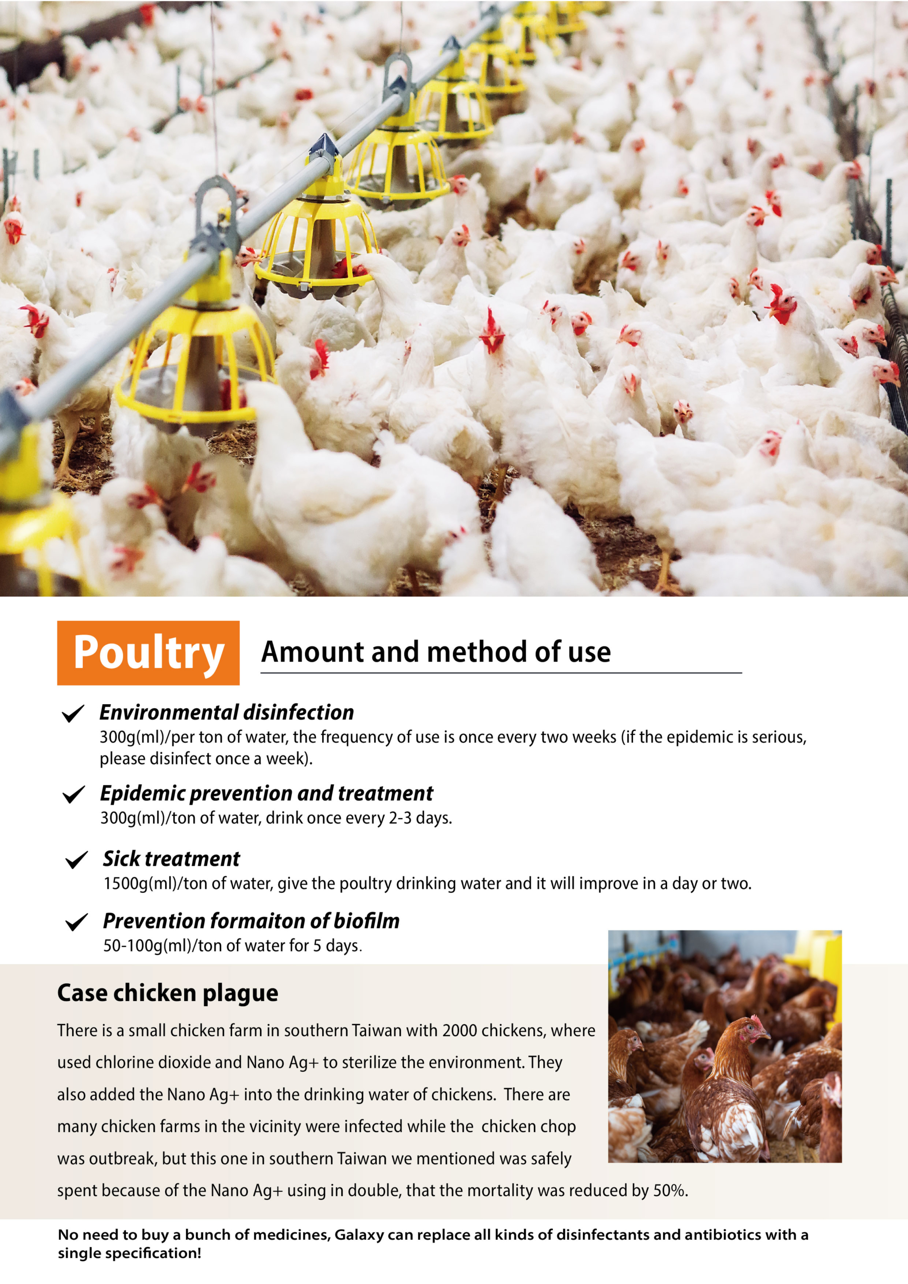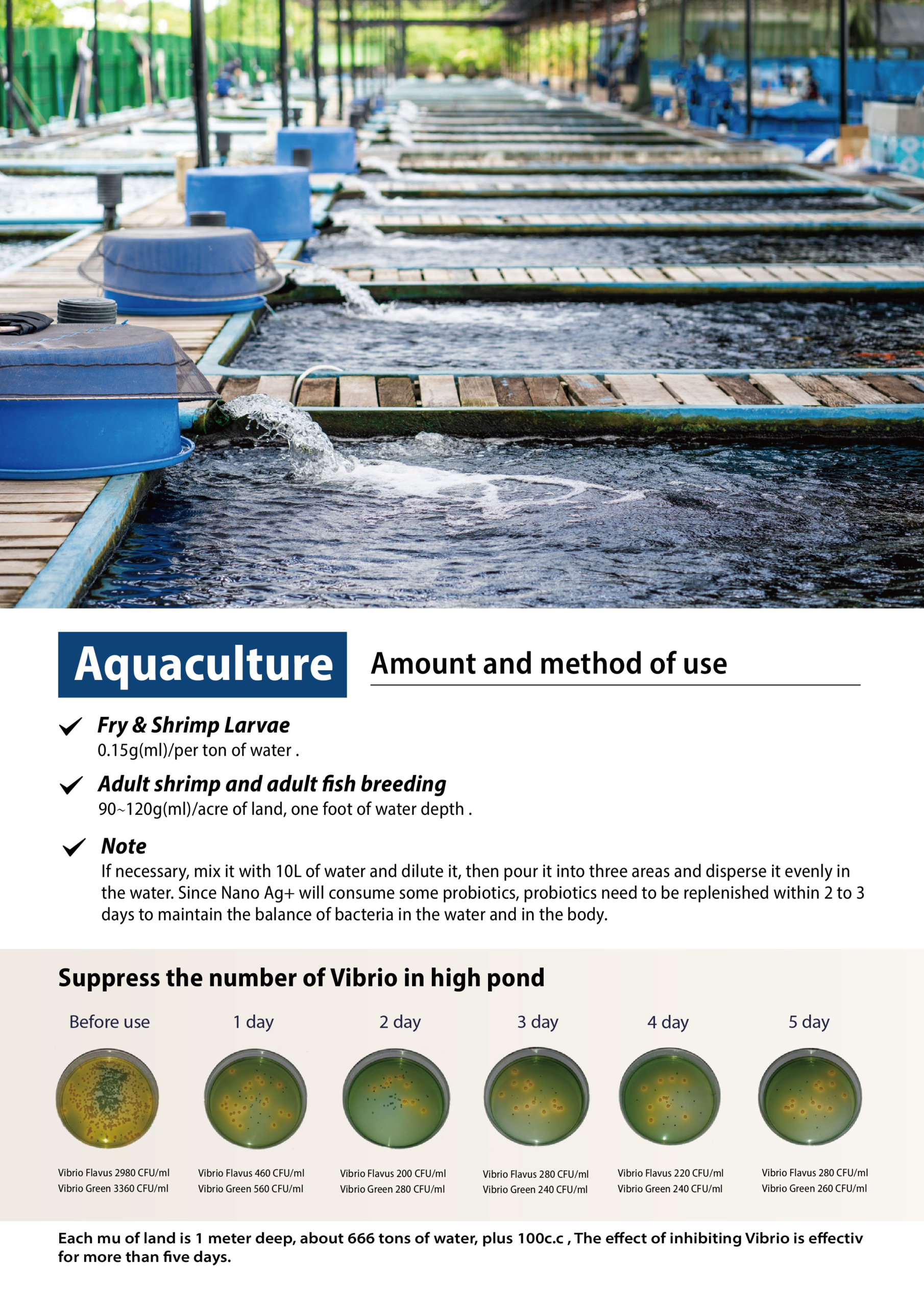 • Prevents diseases and improves water quality in animalhusbandry, aquaculture, and agriculture farms.