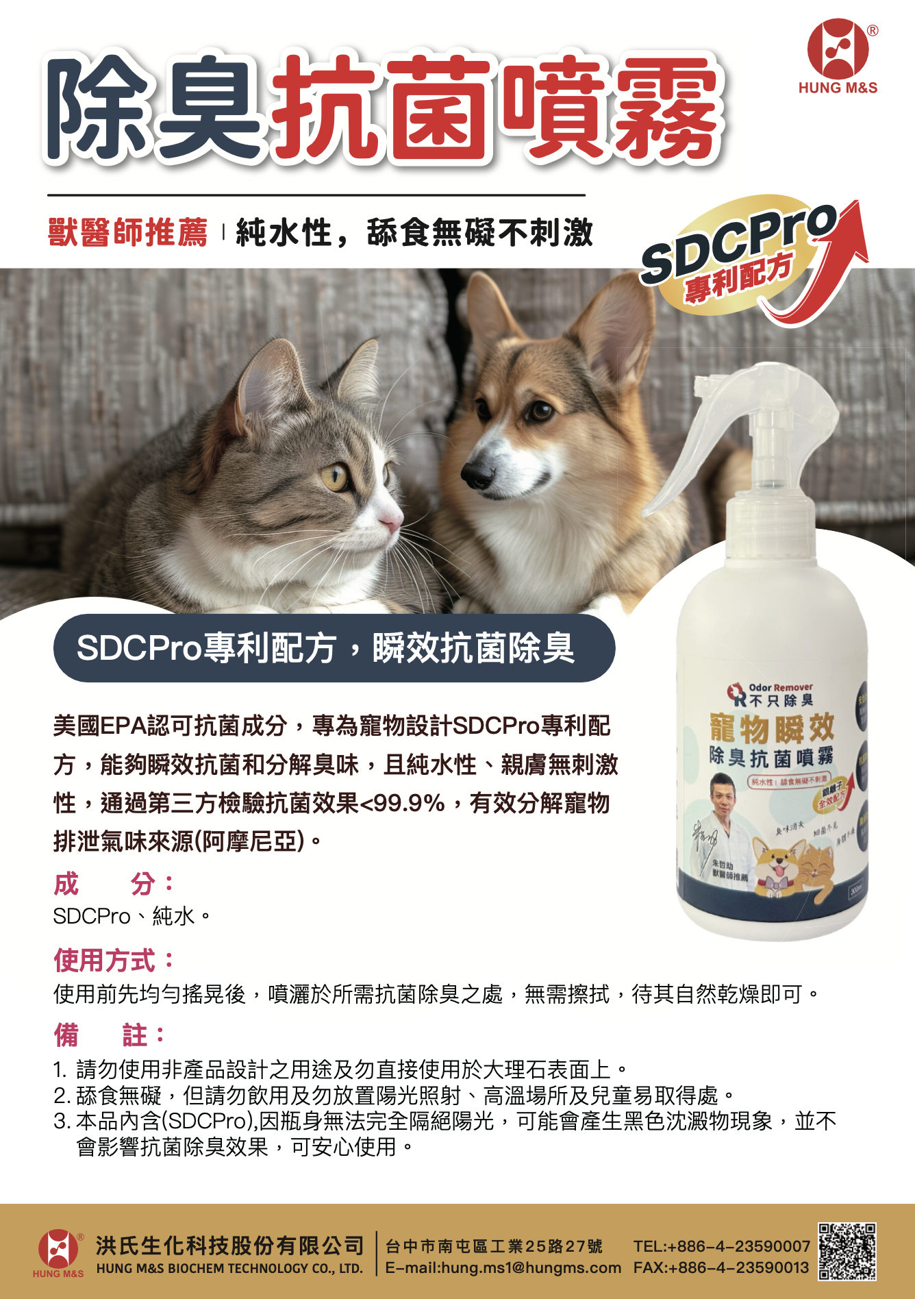 全新食品級銀離子抗菌成分(SDC),瞬效抗菌和分解臭味因子,專為寵物設計,純水性、親膚無刺激,通過第三方檢驗抗菌效果99.9%,有效分解寵物排泄氣味來源(阿摩尼亞)。