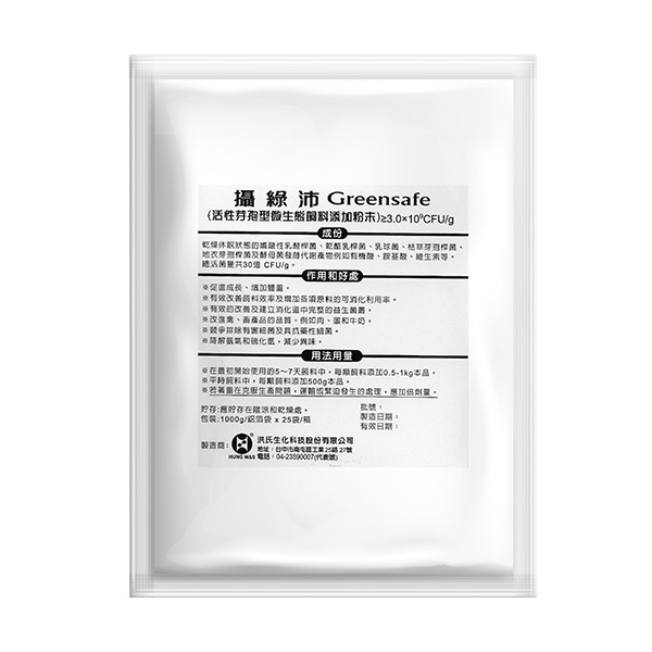 攝綠沛(活性芽孢型微生態飼料添加粉末)是一種高經濟效益和方便使用的微生態(益生菌)產品 。幫助畜牧、家禽及寵物,例如:(豬、雞、牛、鴨子、貂、鹿、狗和貓)等動物,在消化道中建立完整的益生菌叢,進而提升飼料在消化道中的轉化吸收利用率 。